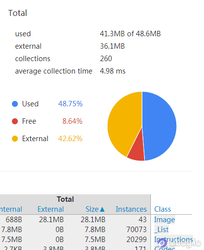 这个图能看到确实是图片的占用占据了很大的一部分内存没有释放