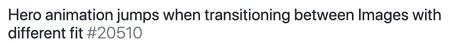 但是图片不仅有大小的属性,还有 fit 的属性,fit=cover 会填满容器,fit=contain 会展示全部图片内容,Hero 没办法处理这个属性的过渡,所以就出现了问题,也就是下面这个 issue 的问题: