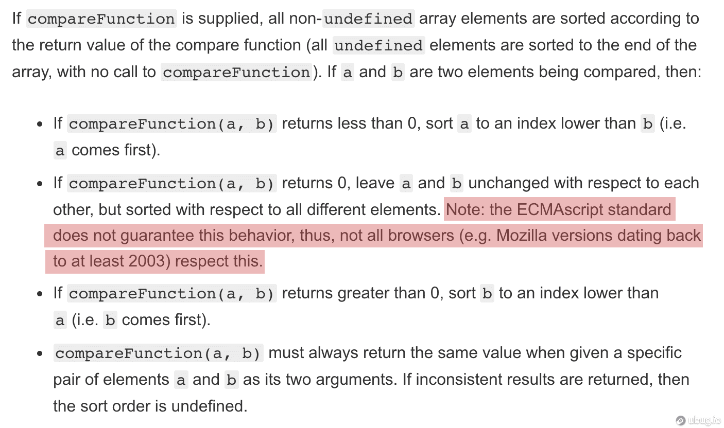 里面就明确说这个排序的实现并不是每个浏览器都相同。