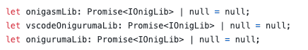 | vscode-oniguruma | vscode-oniguruma | [最近更新] vscode 用 wasm 对 oniguruma 封装的模块,应该可以在浏览器端运行,但是[Apr 16, 2020]刚创建的项目还没试 |